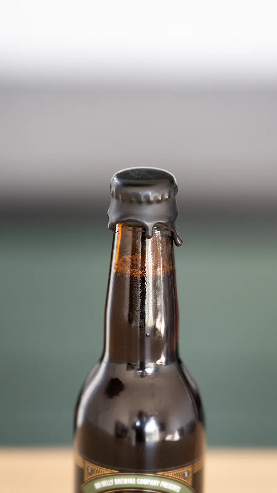Liquid Desserts 20.1 Rye BA Salted Caramel Pecan Pie Quad, bo tak brzmi pełna nazwa piwa, to podrasowany belgijski quadrupel. Pisząc podrasowany mam na myśli wspomniane leżakowanie oraz dodatek orzechów Pekan i karmelu. Całość zapakowana jest w butelkę z zalakowną czarnym lakiem szyjką i kapslem.