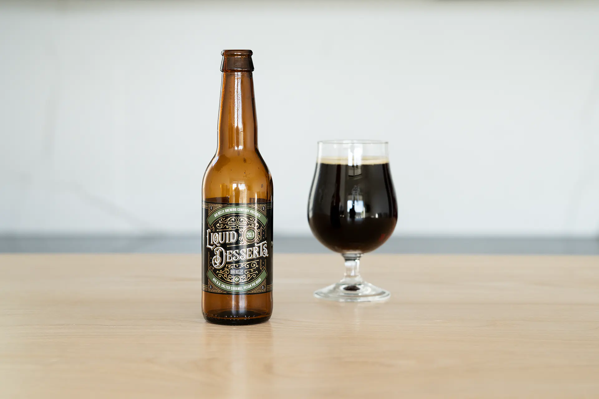 Liquid Desserts 20.1 Rye BA Salted Caramel Pecan Pie Quad, bo tak brzmi pełna nazwa piwa, to podrasowany belgijski quadrupel. Pisząc podrasowany mam na myśli wspomniane leżakowanie oraz dodatek orzechów Pekan i karmelu. Całość zapakowana jest w butelkę z zalakowną czarnym lakiem szyjką i kapslem.