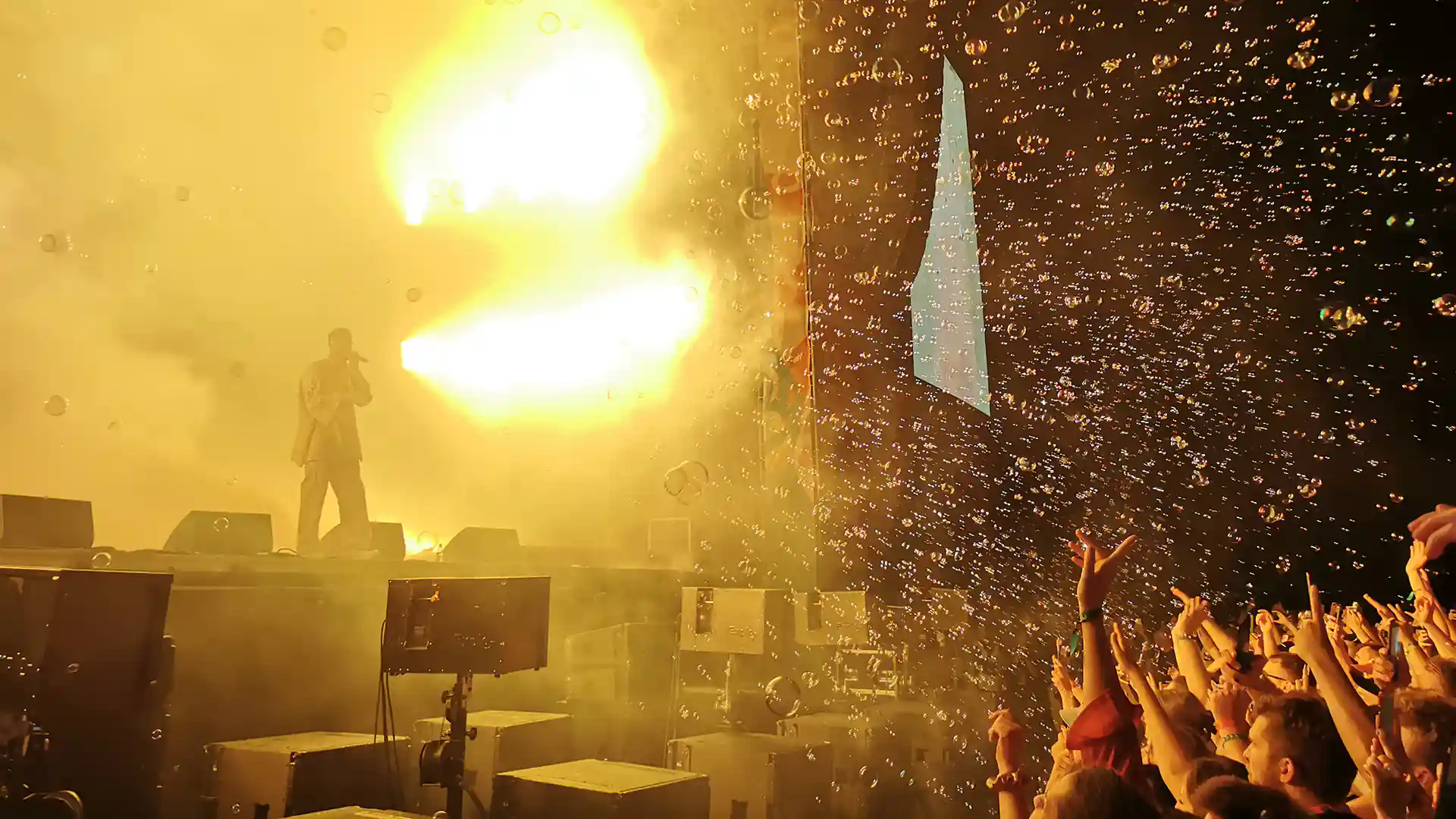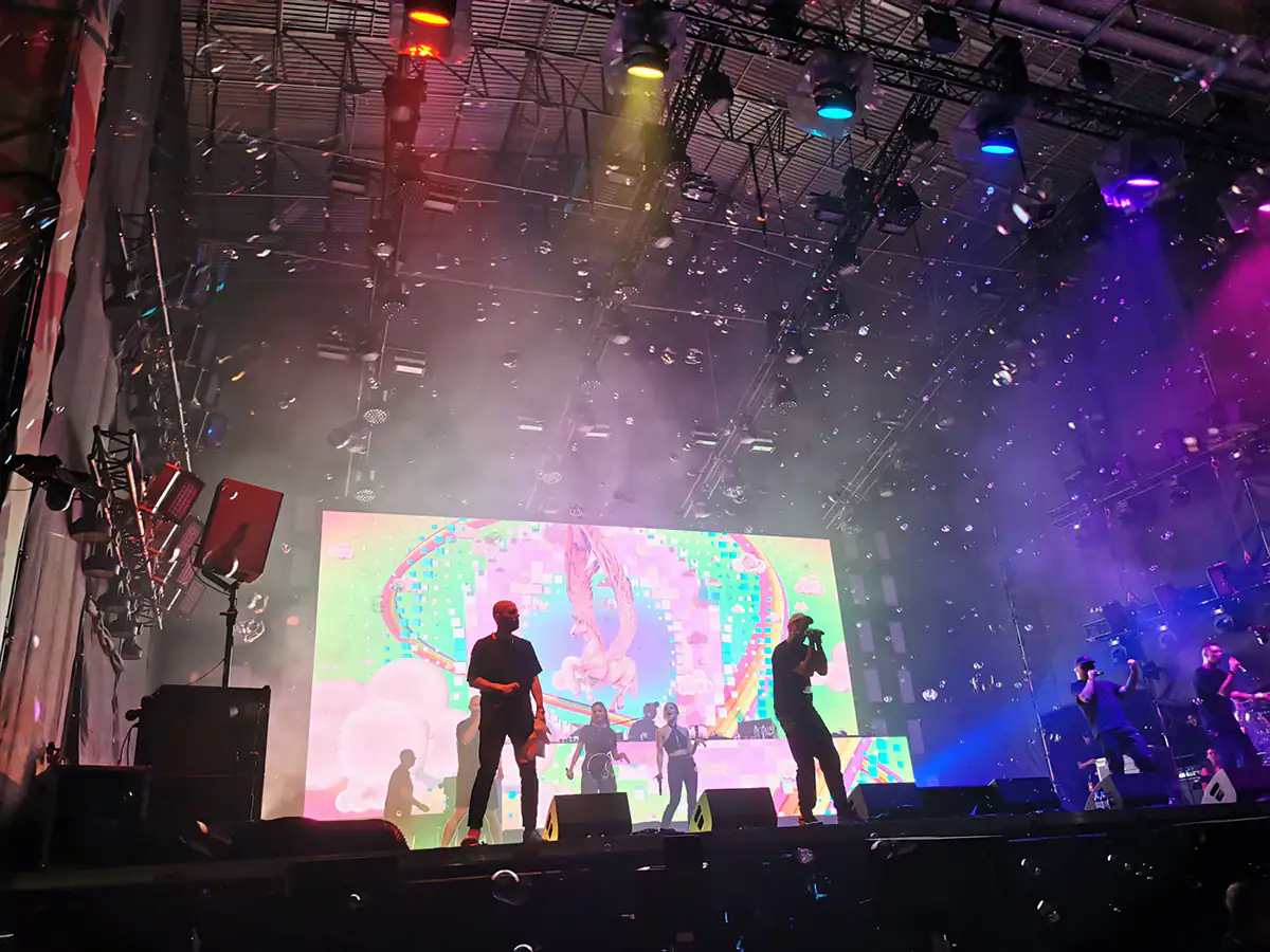Dodatkowo tak jak w przypadku oprawy na koncercie Sokoła zostały uruchomione bańki mydlane, które unosiły się nad tłumem, więc efekt był niesamowity.