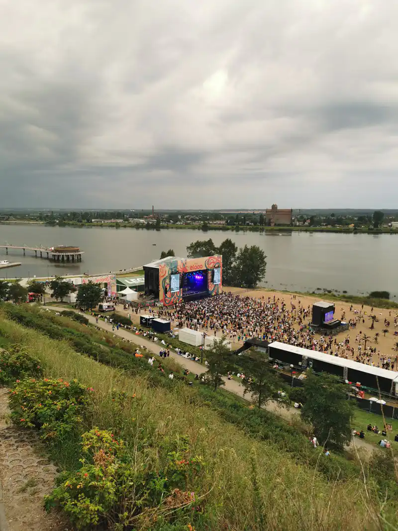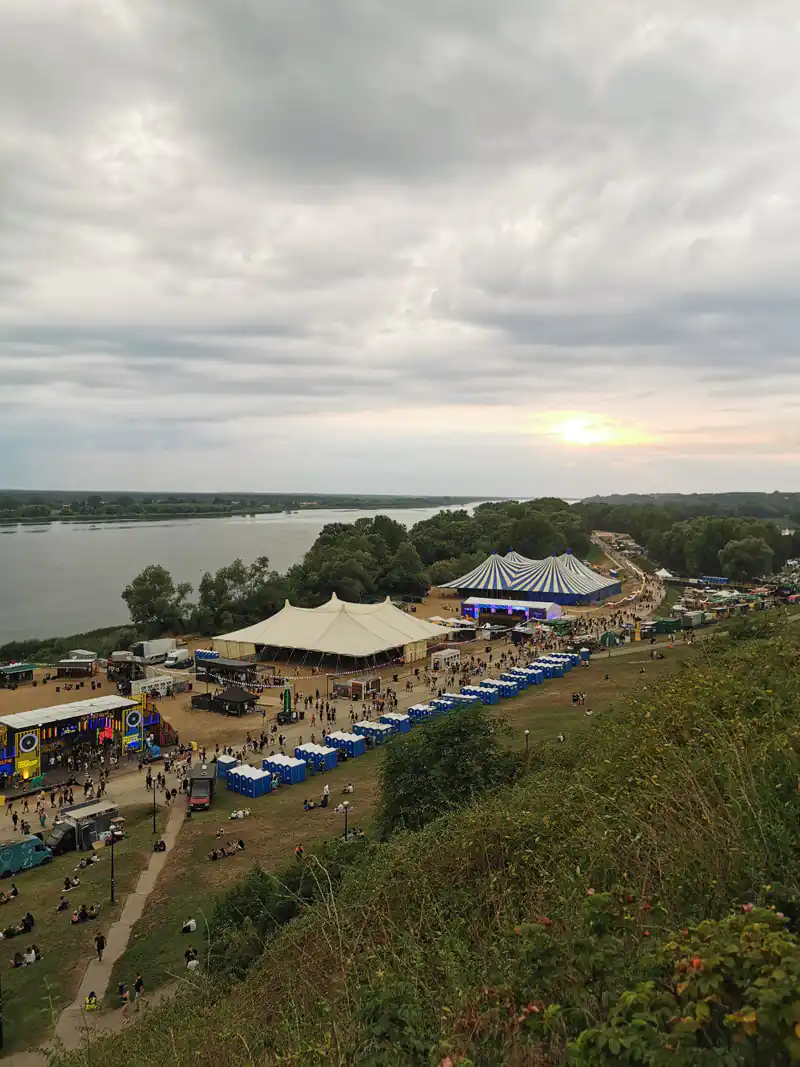 Festiwal odbywa się w super miejscu, którym jest plaża nad Wisłą na którą schodzi się dosyć stromym zboczem. Ma to swoje plusy, bo z festiwalu dosyć łatwo i szybko można dostać się na rynek w Płocku i skorzystać z oferty gastronomicznej.