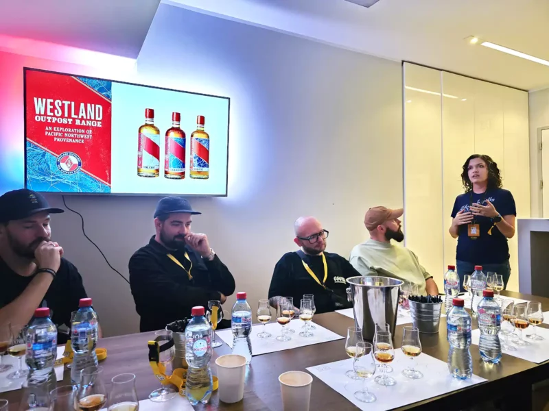 Drugim z Masterclass’ów, w którym brałem udział, był ten organizowany przez Westland – amerykańską destylarnię z Seattle produkującą whisky Single Malt. Sesję prowadziła przemiła Ana Hinz, która jest managerką rozwoju destylarni.