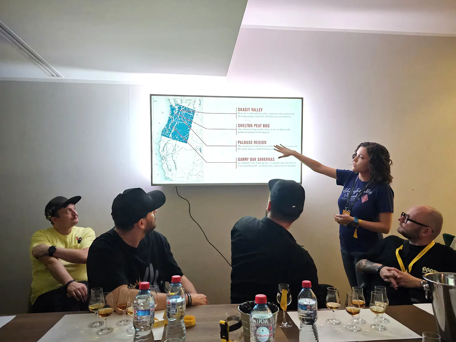 Drugim z Masterclass’ów, w którym brałem udział, był ten organizowany przez Westland – amerykańską destylarnię z Seattle produkującą whisky Single Malt. Sesję prowadziła przemiła Ana Hinz, która jest managerką rozwoju destylarni.