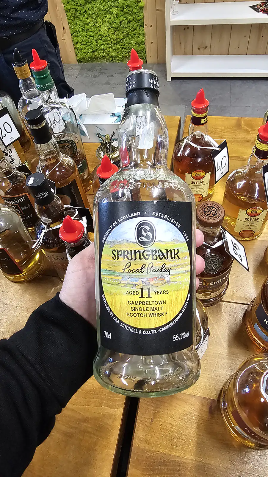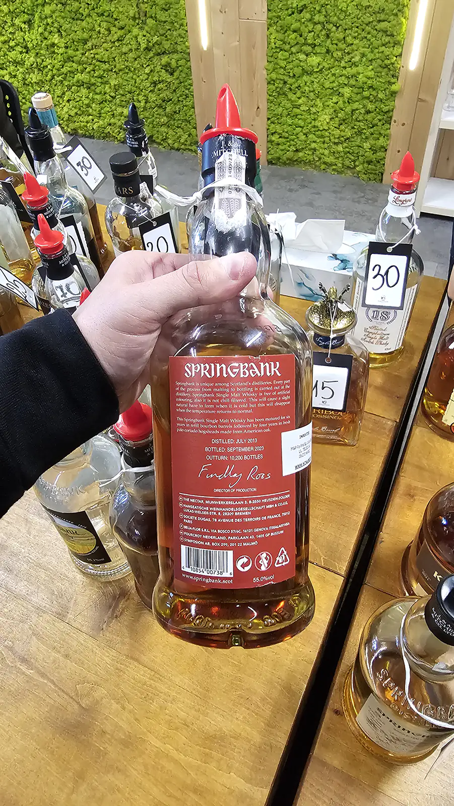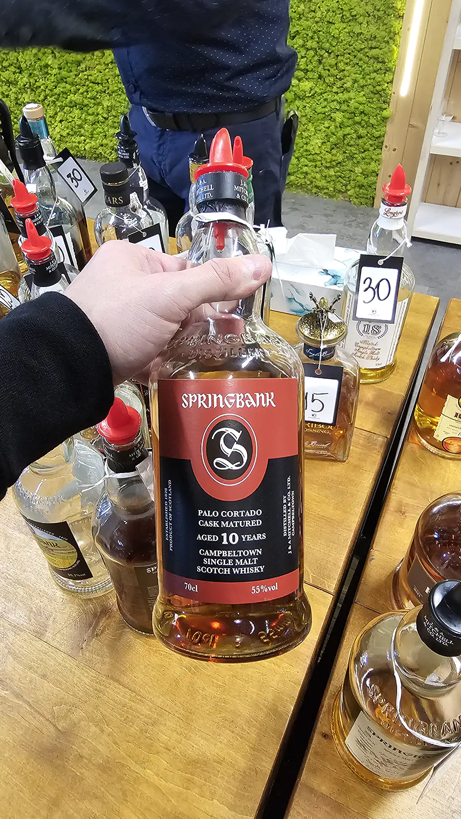 Na stoisku destylarni Springbank można było spróbować wersji 10, 15, 18 i 21-letniej, a także 11-letniej Local Barley. Ja wypróbowałem tylko 15-letniej wersji z core range. 18 i 21-letnią edycję zostawiłem na następny raz.
