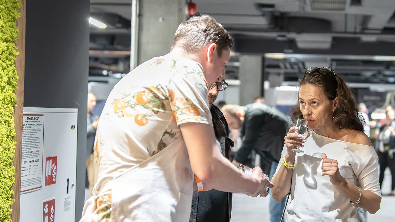 Kieszonki na szyję niestety słabo się sprawdzają, więc dobrze byłoby zobaczyć na przyszłych edycjach smycz z gumką do mocowania kieliszka. Ps. takie smyczki Milk & Honey miało właśnie na swoim stoisku.