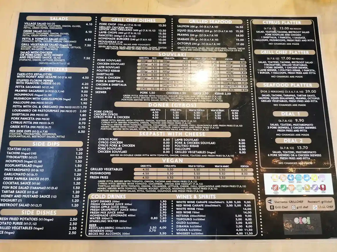 Pochodzili to i zgłodnieli, więc postanowiliśmy udać się na sprawdzone jedzenie w Grill Chef. W dodatku kurczył nam się czas do autobusu, więc nie czas na eksperymenty. Piękna pogoda i magiczna atmosfera świąt w tym ciepłym klimacie, nie zachęcały do powrotu do Polski. Temperatury oraz pogoda w kraju były niestety mocno zimowe. Jesteście ciekawi cen jedzenia? Poniżej wstawiam menu.
