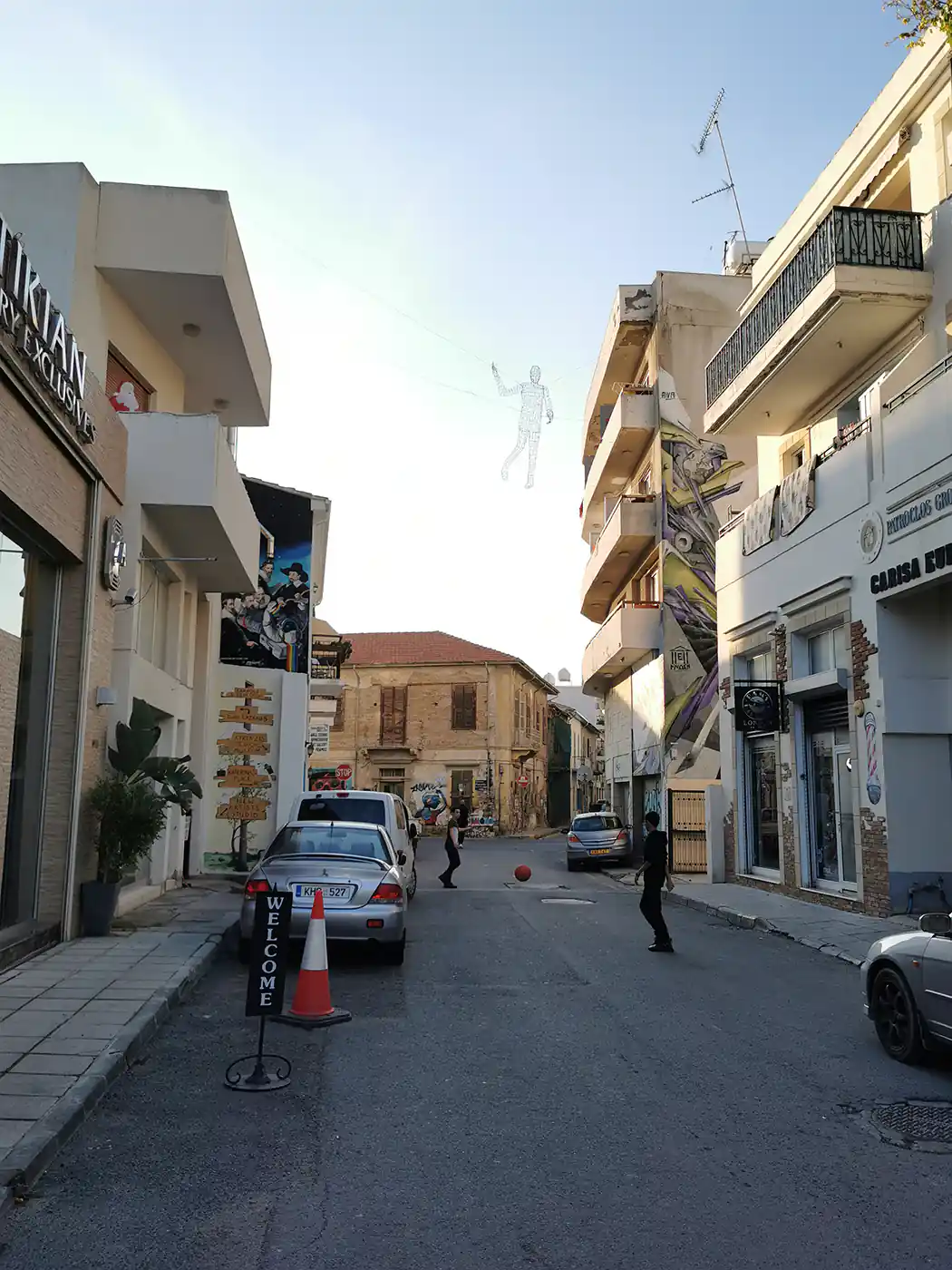 W drodze powrotnej znad słonego jeziora znaleźliśmy świetne osiedle niesamowitych willi, a także ciekawy kościół – bardzo ładna okolica. Trafiliśmy też na świetną piekarnio-cukiernię o nazwie Zorbas Bakery, którą bardzo polecam. Kupiliśmy tam pyszny blok czekoladowy z migdałami. Warte spróbowania jest ciastko z Karobu, który rośnie na Cyprze od wieków i wyspa jest z niego znana. Piekarnia ma kilka punktów w mieście, między innymi przy dworcu autobusowym. Przeszliśmy też przez artystyczną uliczkę, która zwróciła naszą uwagę.