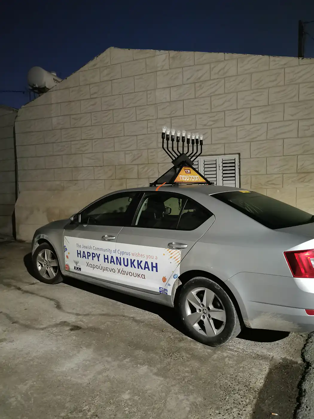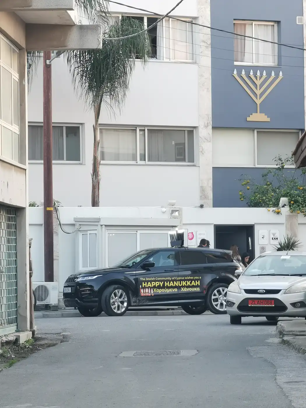 Po drodze do hotelu trafiliśmy na taką ciekawostkę jak na zdjęciach poniżej. Pierwszy raz widzieliśmy takie auto idąc z przystanku do hotelu. Później jeszcze kilka razy mijaliśmy te dosyć niecodziennie przyozdobione samochody. Jak później przeczytałem na Cyprze jest spora społeczność żydowska (ok. 6500 os.), a w samej Larnace jest kilka synagog.