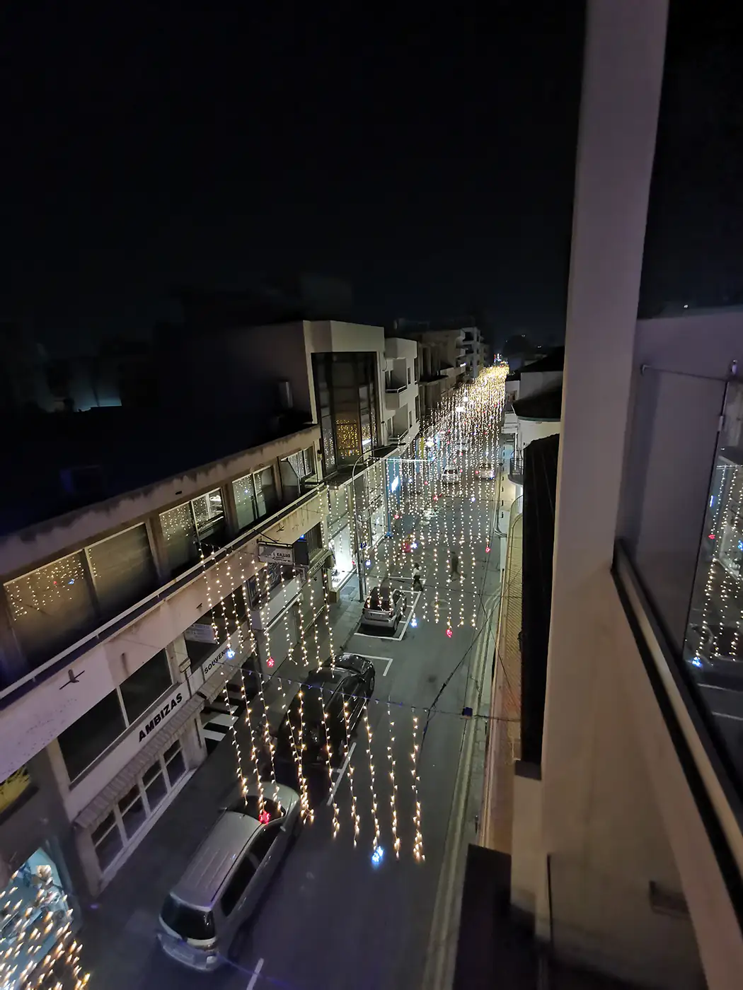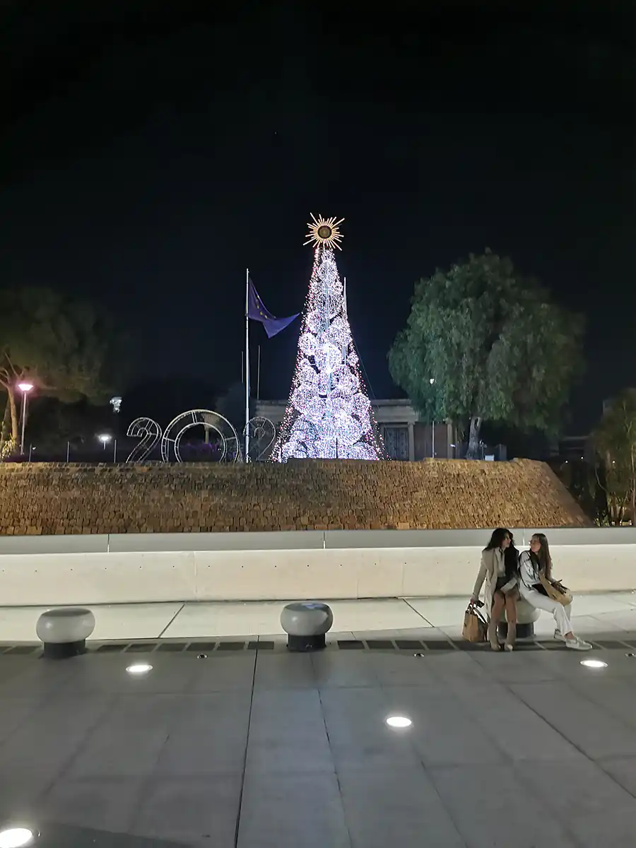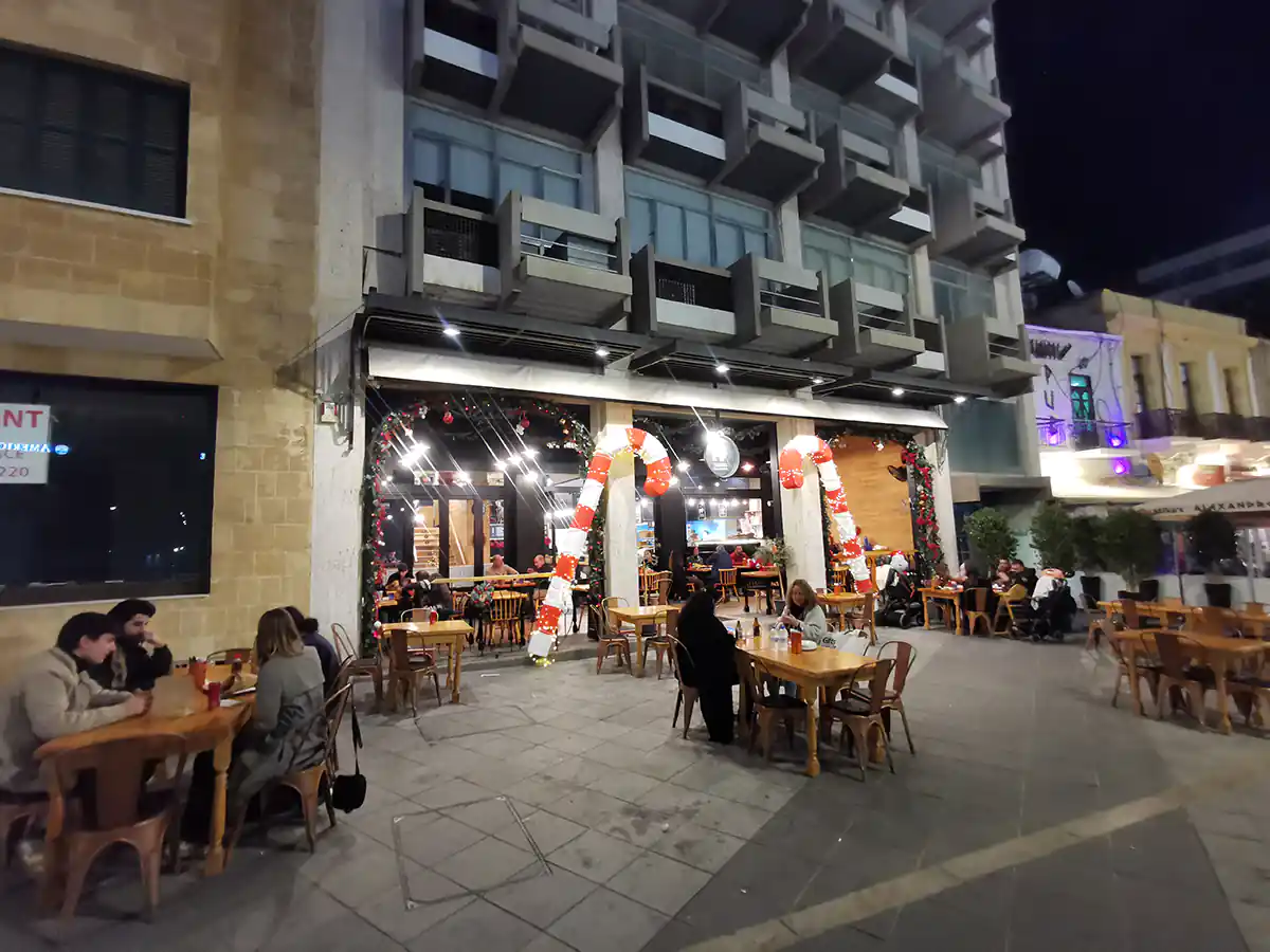 Po tym kalorycznym deserze poszliśmy w kierunku greckiej części. Po chwili byliśmy już na Ledra street przy punkcie kontroli paszportów po tureckiej stronie. Przeszliśmy na część grecką w kierunku centrum i zaczęliśmy myśleć o meczu finałowym mistrzostw w Katarze, który tego dnia miał się odbyć. Po chwili udało nam się znaleźć lokal D’avilla z fajnymi kanapami, piwem, shishą i meczem – tam spędziliśmy pozostały czas w Nikozji. Jak wiecie mecz trwał dosyć długo, bo była dogrywka i emocjonujące karne, więc ostatecznie poszliśmy na autobus po meczu. Do Larnaki odjchaliśmy w okolicach 20:30. W drodze powrotnej na dworzec udało nam się jeszcze przejść po placu obok dworca, na którym wystawiona była miejska choinka.