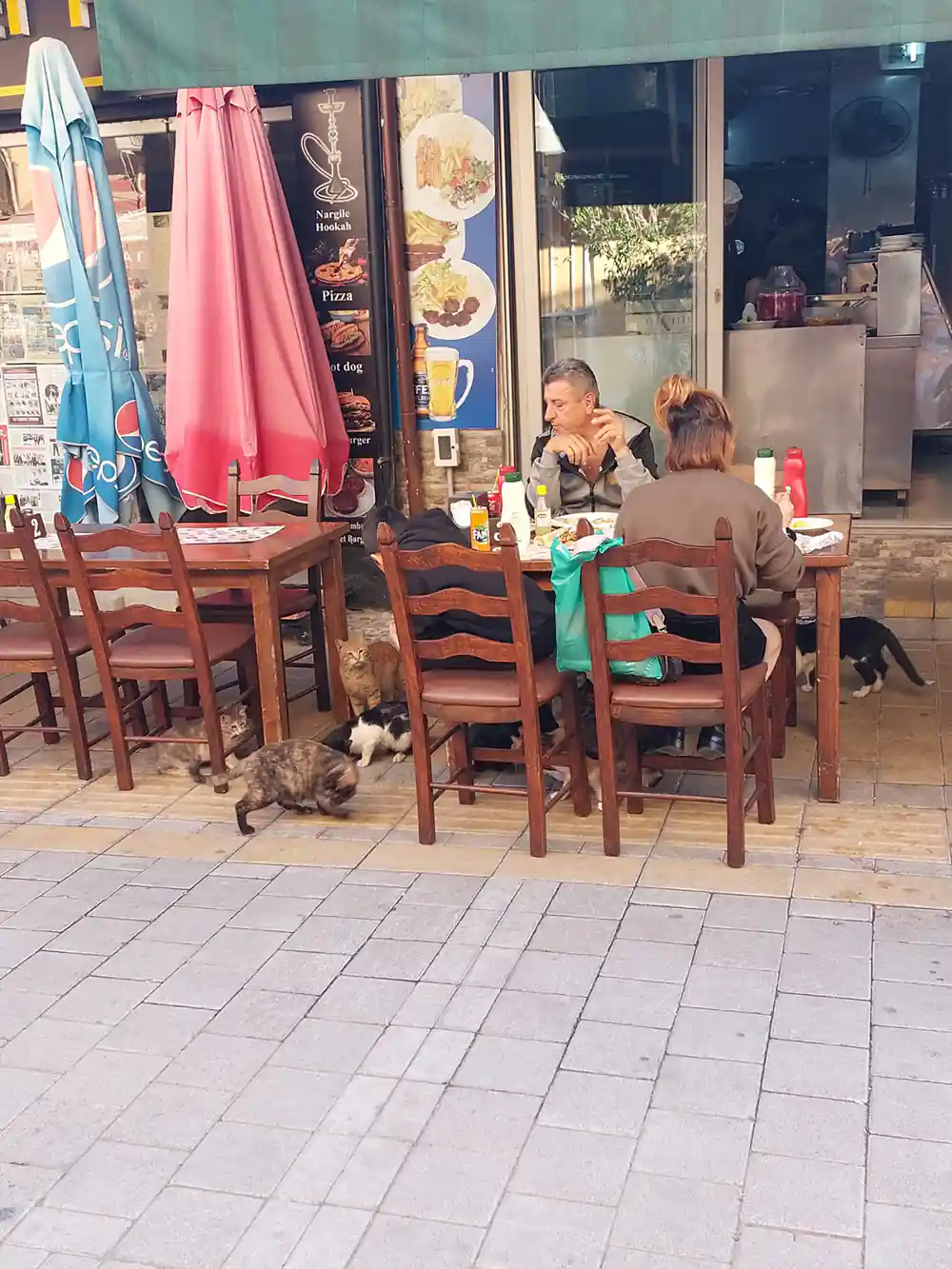Na Cyprze jest ogromna ilość kotów, są wszędzie i mają 'szczególne uprawnienia’. Pisząc to mam na myśli, że nie tylko chodzą po ulicach czy parkach, ale też po barach, restauracjach. Zdarzyło się nawet, że widzieliśmy jak kot wszedł do salonu fryzjerskiego i sobie po nim chodził. Co ciekawe siedząc w pubie, zauważyliśmy też że kot normalnie wszedł za bar i nikt go nie wyganiał. Oczywiście chodził tylko po podłodze, ale mimo wszystko nie jesteśmy przyzwyczajeni w Polsce do takiego dzielenia przestrzeni miejskiej z dzikimi kotami.