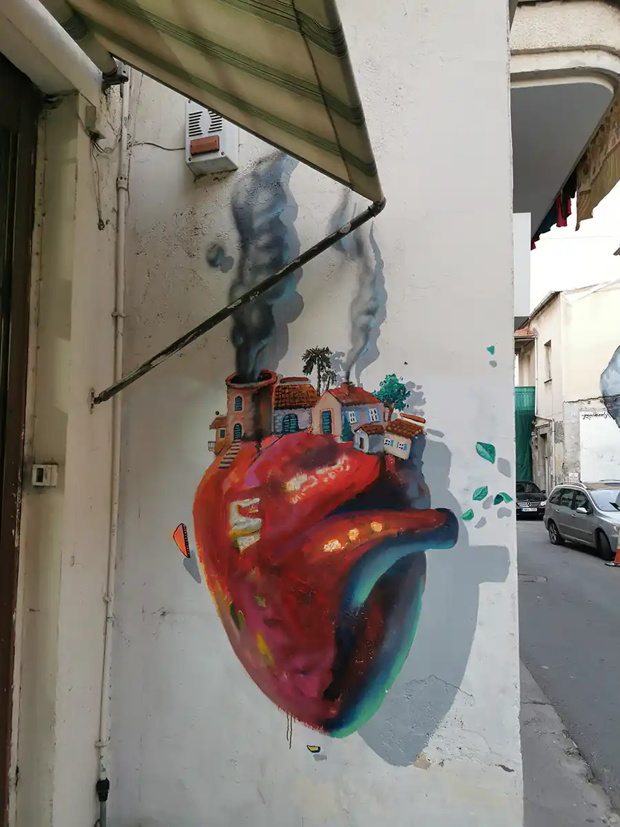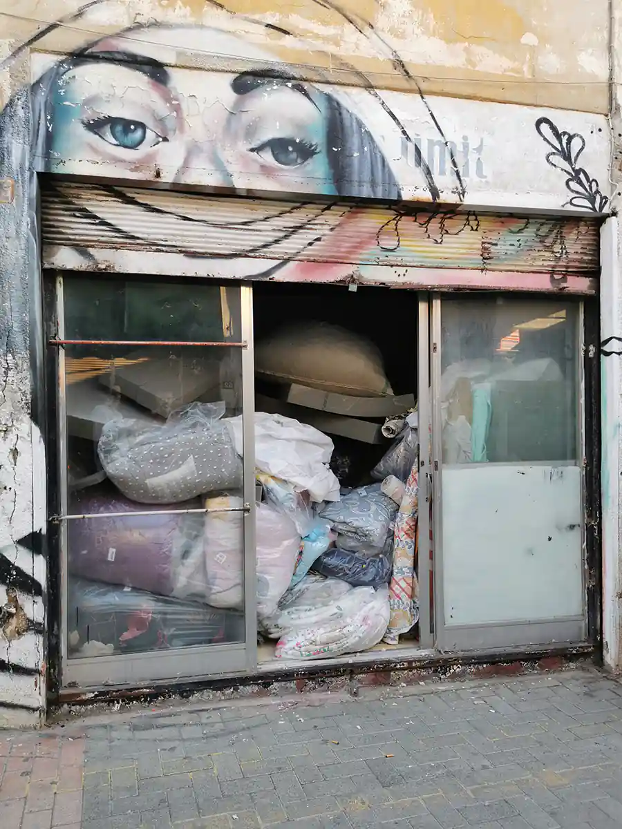Po chwili trafiliśmy na przejście przez 'granicę’ pomiędzy grecką i turecką częścią. Na granicy trzeba pokazać paszport na wyjściu z greckiej części, a następnie na wejściu do części tureckiej. Pamiętajcie, że musicie mieć paszport, bo z dowodem osobistym nie przejdziecie. Jest to dziwne doświadczenie, bo to jest to samo miasto, a nawet ta sama ulica. Po przejściu na drugą stronę różnicę widać gołym okiem. Dużo pustostanów, niektóre podwórka wyglądają jak slamsy. Opuszczone lokale wypełnione śmieciami i dziwny klimat, to jest coś co zwróciło naszą uwagę. Chcieliśmy wejść do wegeknajpy, którą znaleźliśmy na Google i miała opinię 4.9, ale okazała się dziwnym podwórkiem z zamkniętą bramą i tabliczką.