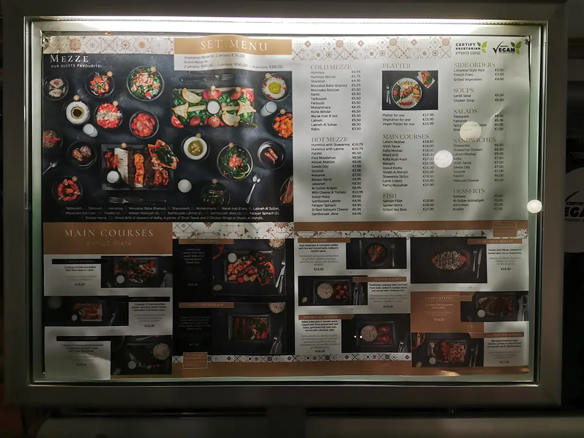 Pochodzili to i zgłodnieli, więc postanowiliśmy udać się na sprawdzone jedzenie w Grill Chef. W dodatku kurczył nam się czas do autobusu, więc nie czas na eksperymenty. Piękna pogoda i magiczna atmosfera świąt w tym ciepłym klimacie, nie zachęcały do powrotu do Polski. Temperatury oraz pogoda w kraju były niestety mocno zimowe. Jesteście ciekawi cen jedzenia? Poniżej wstawiam menu.