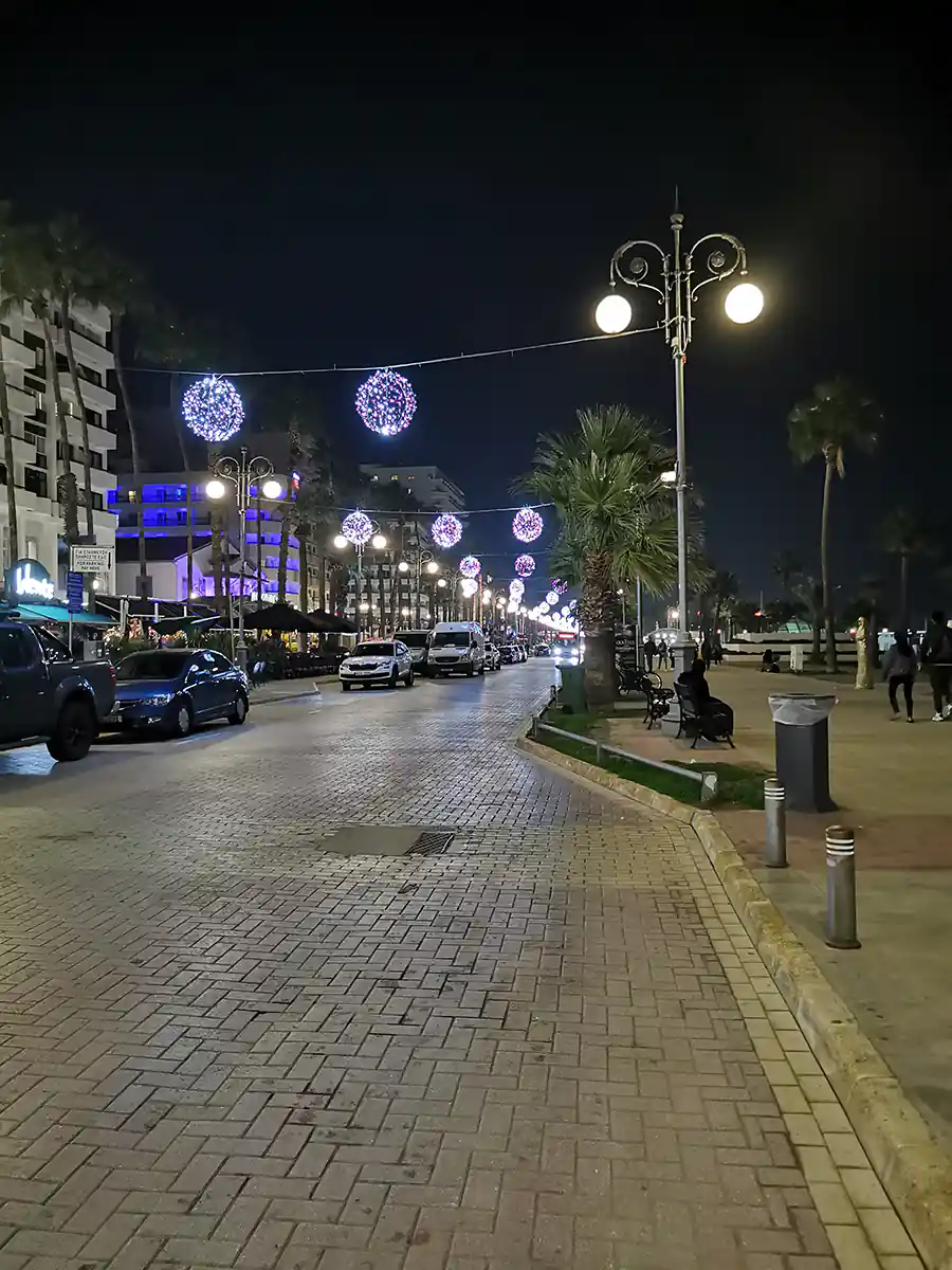 Po godzinie byliśmy już w Larnace i poszliśmy się ogarnąć do hotelu, żeby późniejszym wieczorem wyjść na kolację. Tym razem zdecydowaliśmy się na Maqam Al-Sultan z kuchnią libańską. Restauracja znajduje się zaraz przy plaży i tuż obok imprezowej uliczki z barami oraz…. warsztatami rzemieślników. Polecam to miejsce, bo mają pyszne jedzenie i nawet sałatka była rewelacyjna i bardzo dobrze doprawiona. W ten sposób zakończyliśmy też 3ci i jakże udany dzień naszego citybreak’u na Cyprze.