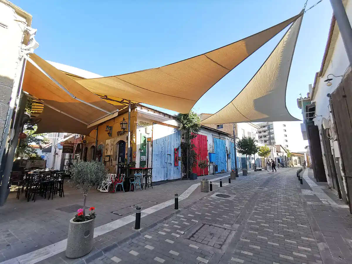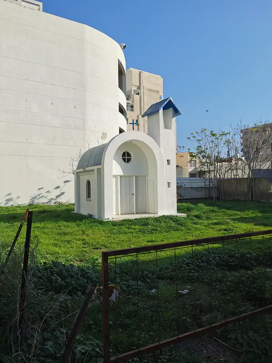 W drodze powrotnej znad słonego jeziora znaleźliśmy świetne osiedle niesamowitych willi, a także ciekawy kościół – bardzo ładna okolica. Trafiliśmy też na świetną piekarnio-cukiernię o nazwie Zorbas Bakery, którą bardzo polecam. Kupiliśmy tam pyszny blok czekoladowy z migdałami. Warte spróbowania jest ciastko z Karobu, który rośnie na Cyprze od wieków i wyspa jest z niego znana. Piekarnia ma kilka punktów w mieście, między innymi przy dworcu autobusowym. Przeszliśmy też przez artystyczną uliczkę, która zwróciła naszą uwagę.