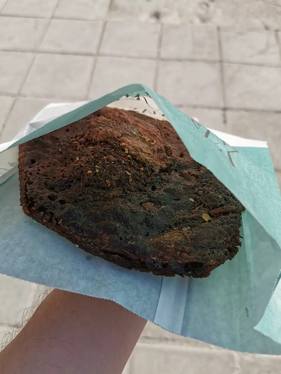 Nie byliśmy głodni, ale na horyzoncie zobaczyliśmy kolejny oddział wspomnianej wcześniej Zorbas Bakery. Oczywiście weszliśmy, żeby kupić lody, ale okazało się że nie ma w kulkach i….wyszliśmy z ciastkiem z Karobu. Mam nadzieję, że kaloryczność tego ciastka zamykała się w 3 cyfrowej liczbie, ale było warto. W smaku jak przepalany cukier, ale z takim ziołowym posmakiem i lekką goryczką.