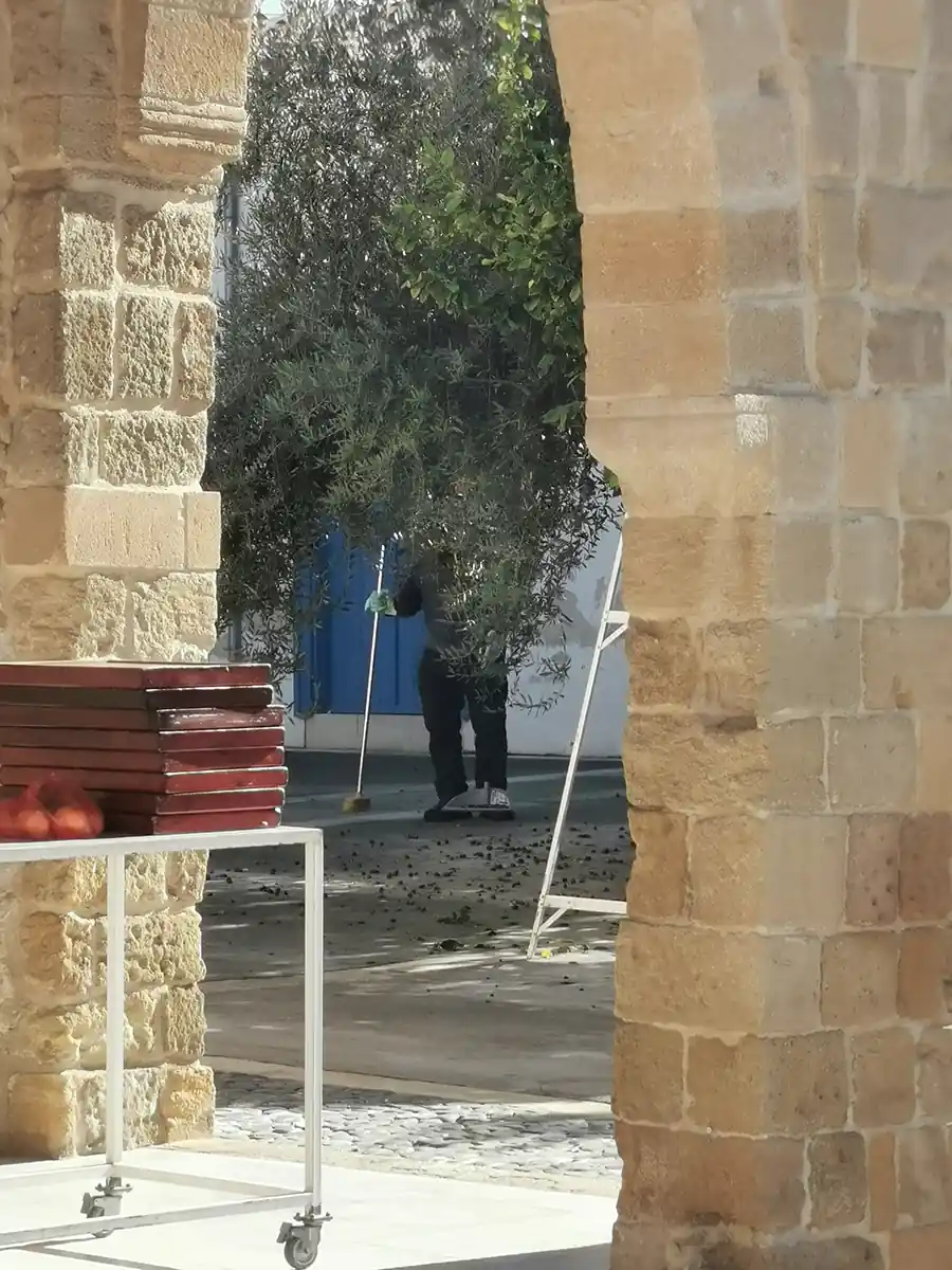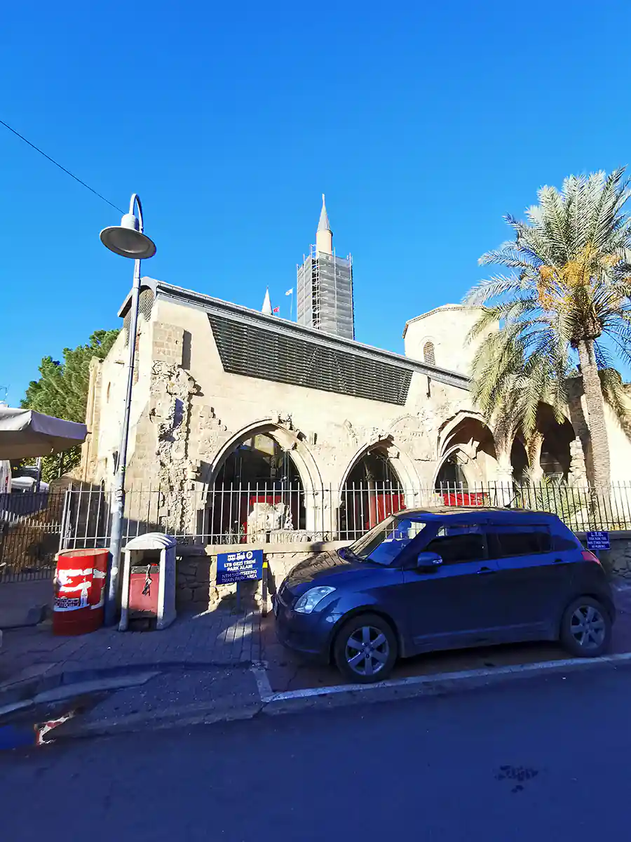 Nawigacja podpowiedziała Nam, że za kolejne 1,5km dotrzemy do tureckiej części Nikozji. Udaliśmy się w tym kierunku miając przed sobą masę wąskich, kameralnych uliczek. Jedną z nich trafiliśmy do artystycznej części miasta, a następną do bardzo kameralnego kościoła. Na placu przed kościołem Panowie sprzątali teren ze…. spadających oliwek i pomarańczy – ciekawie się to ogląda.
