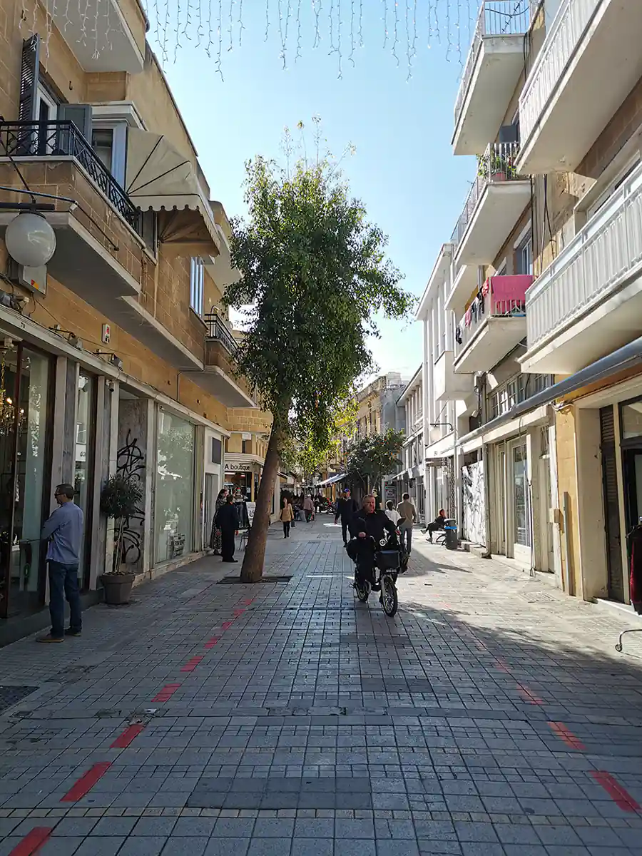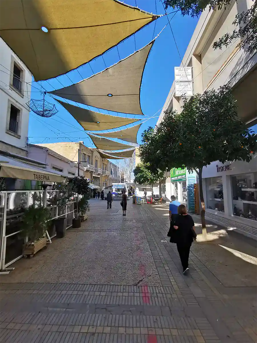 Przed 11:00 dojechaliśmy do Nikozji, dworzec znajduje się w centrum miasta przy placu Solomou. Lokalizacja dworca jest bardzo dobra jeśli chodzi o rozpoczęcie zwiedania. Postanowiliśmy udać się w kierunku Murów Weneckich, bo Google pokazał lekko ponad 1 km spacerkiem. Po drodze wydarzyła się bardzo dziwna historia. Weszliśmy do sklepu, żeby zakupić wodę. Wchodzimy, biorę wodę z lodówki i idziemy do kasy a tu… nikogo nie ma. Wołamy, nic. Poczekaliśmy łącznie może z 4-5 minut, ale w środku brak obsługi. No nic, odłożyłem wodę na miejsce i wyszliśmy. Idziemy dalej, mijając masę uroliwych uliczek i pięknych mini-kamienic.