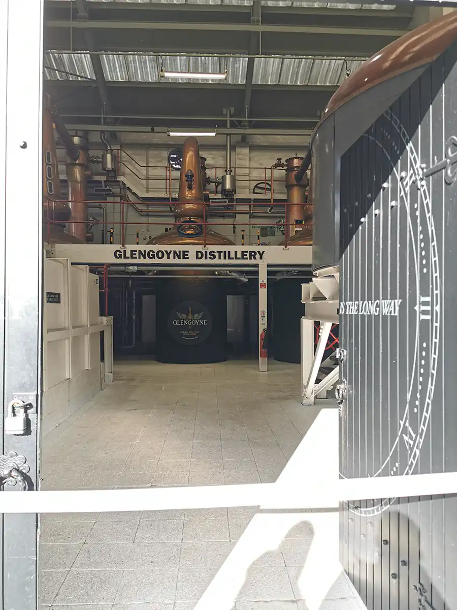 Choć sama destylarnia zaliczana jest do regionu Highlands, to whisky którą produkuje ma łagodny charakter zbliżający ją do trunków z Lowlands. Żeby dodać całej sytuacji więcej przewrotności beczki z whisky leżakowane są w magazynie po drugiej stronie ulicy – na przeciwko destylarni. To właśnie ta ulica stanowi granicę między regionami Lowlands oraz Highlands. Te fakty sprawiają, że whisky Glengoyne destylowana jest w Highlands, a leżakowana na terenie zaliczanym jako Lowlands! Wróćmy do wizyty w tej pięknie i przewrotnie położonej destylarni.