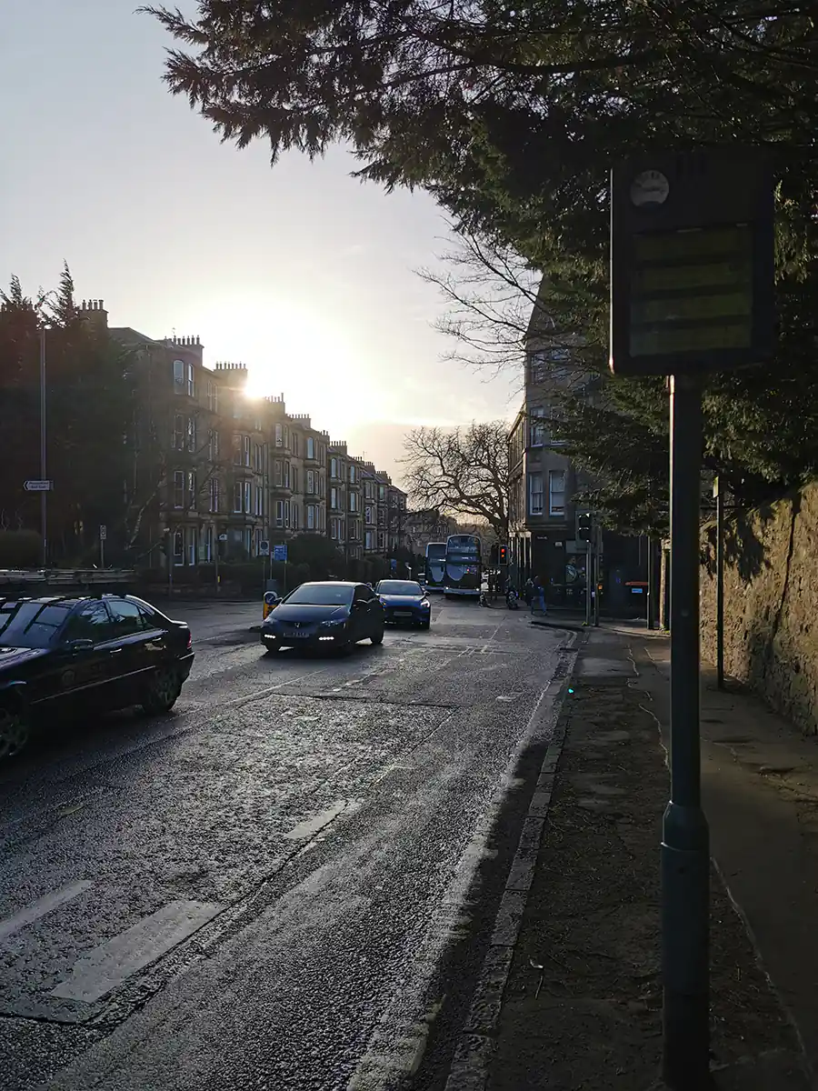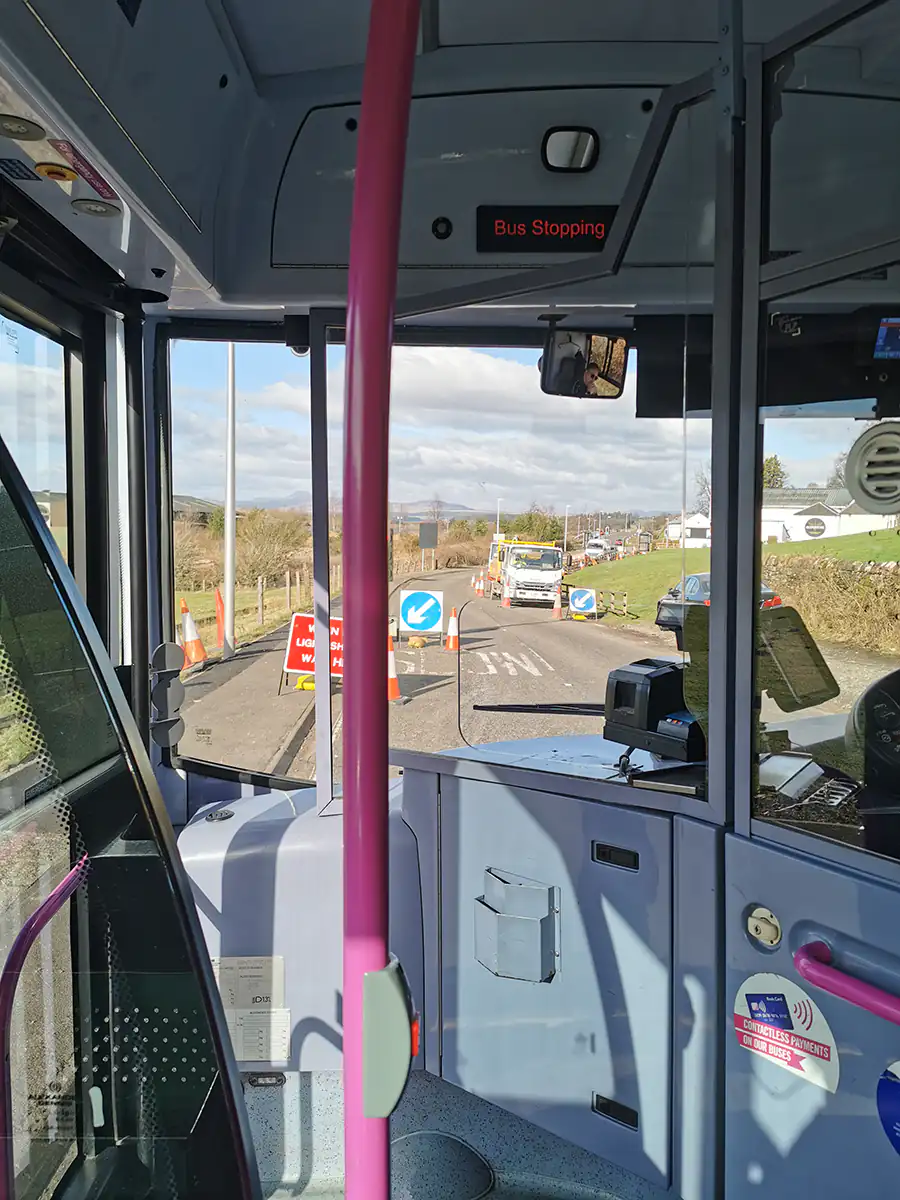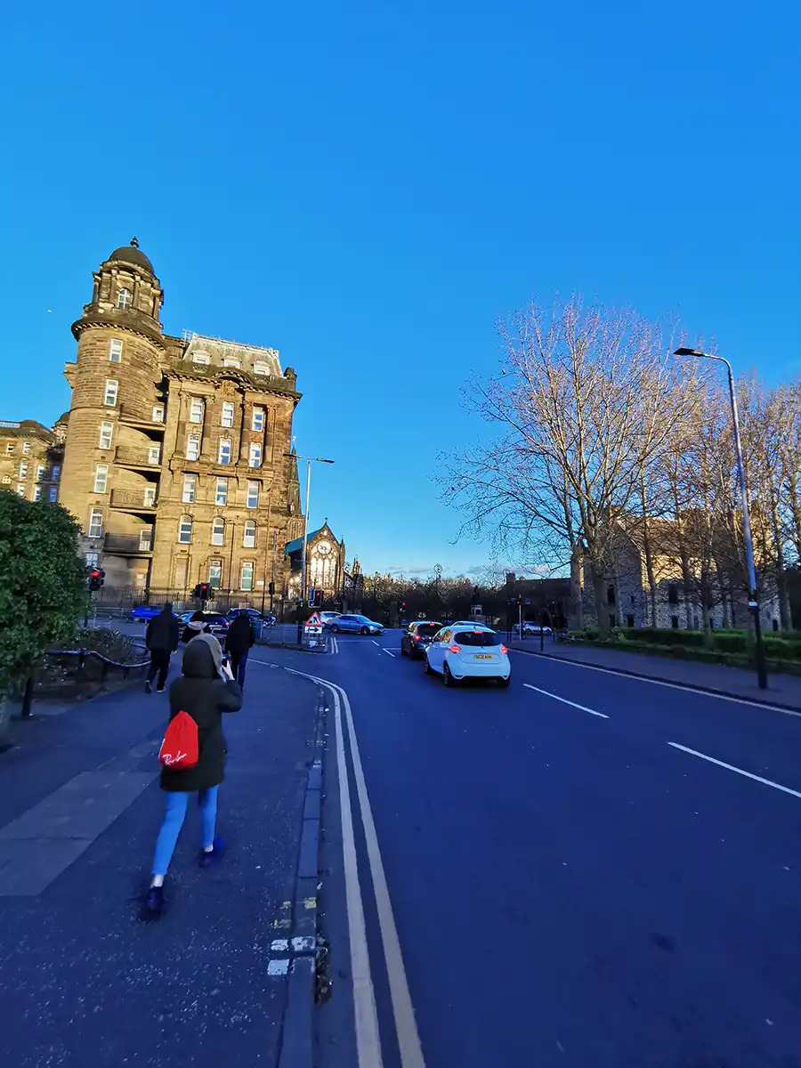 Najedzeni, szczęśliwi i odrobinę zmęczeni udaliśmy się w stronę dworca – wystarczy ok. 15 minut. Po chwili spaceru byliśmy już w autobusie jadącym do Edynburga. Co ciekawe każdy fotel miał zainstalowaną w tyle fotela ładowarkę indukcyjną do telefonu oraz uchwyt do położenia telefonu w poziomie. Świetne rozwiązanie do oglądania filmów w trakcie podróży!