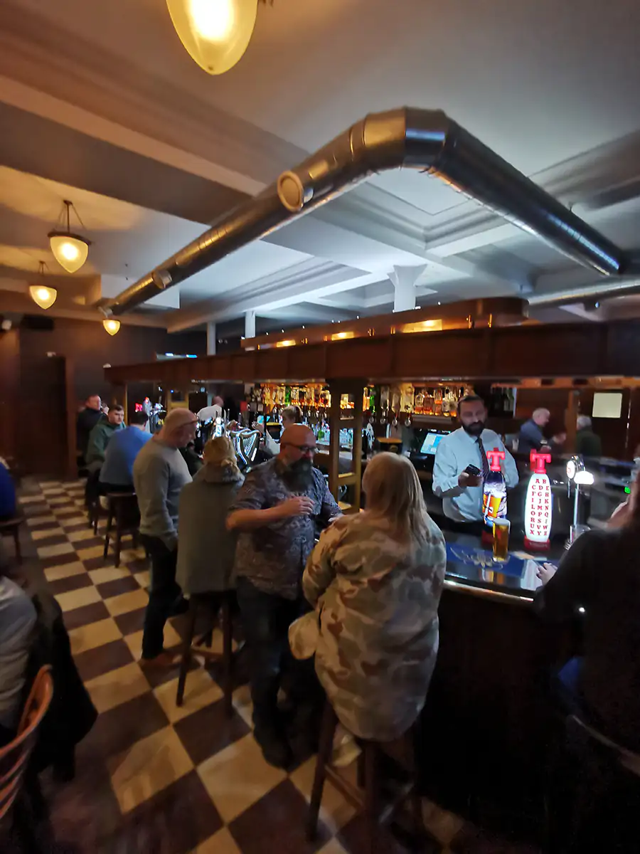 Po chwili przechadzki i robienia zdjęć udaliśmy się na metro, żeby dojechać do upatrzonej przez Anię wege miejscówki (Suissi Vegan Kitchen, ocena 4.9/5) z jedzeniem. Na miejscu niestety okazało się, że wszystkie stoliki mają zarezerwowane i nic nie zjemy. Postanowiliśmy zatem napić się Guinessa w barze Deoch An Dorus znajdującym się niedaleko i przemyśleć plan na jedzenie.
