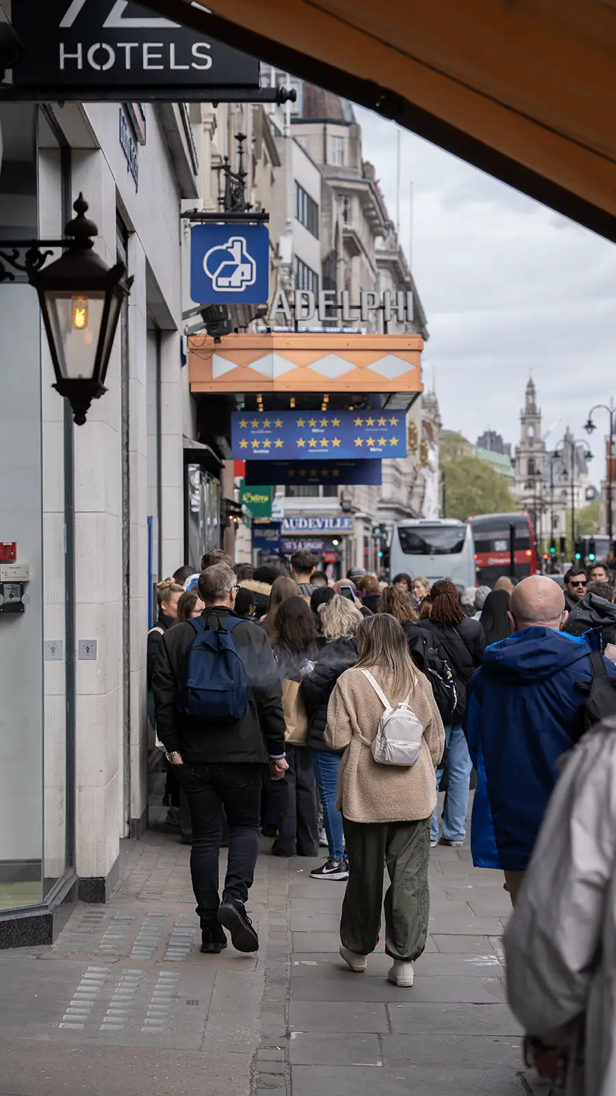 Zaraz po musicalu ogarnięci ekscytacją spowodowaną wydarzeniami na scenie niestety musieliśmy pospiesznie udać się na stację City Thameslink. Z niej właśnie można dotrzeć pociągiem do Luton, a stamtąd zmieniając stację kolejką DART prosto na lotnisko. Wychodząc z Adelphi Theater zauważyliśmy że na wprost jest jakiś mega ładny wjazd do hotelu. Dzień później będąc w Polsce przypadkiem w telewizji trafiłem na program Hotel Savoy i to był właśnie on – co za zbieg okoliczności!